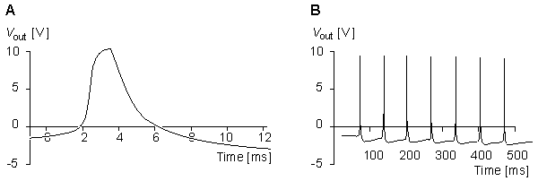 In 1991, Misha Mahowald and Rodney Douglas published an integrated circuit realization of electronic neuron model (Mahowald and Douglas, 1991). It was realized with complementary metal oxide semiconductor (CMOS) circuits using very large-scale integrated (VLSI) technology. Their model simulates very accurately the spikes of a neocortical neuron. The power dissipation of the circuit is 60 µW, and it occupies less than 0.1 mm2. The authors estimate that 100-200 such neurons could be fabricated on a 1 cm × 1 cm die.